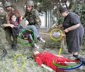 Я не стану говорить о том, что сами жители Гори признались, что их вывели грузинские войска из домов, увезли, а привезли в разрушенные квартиры, не стану рассказывать, как самые отъявленные саакишисты (очень похоже на фашисты) признали, что военные не чинили беспредел. В этой статье мы обсуждаем только фото.