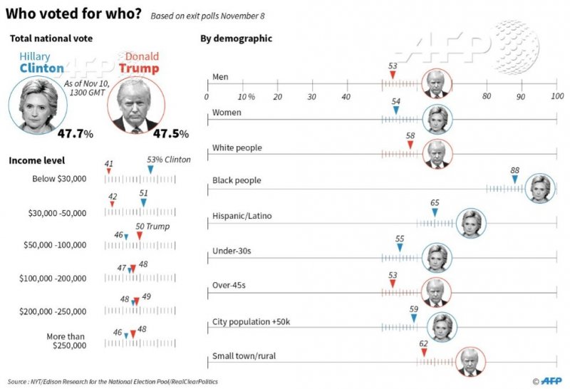 За Трампа голосовала малообразованная американская деревня. За Хилари образованные люди в городах, интеллигенция.